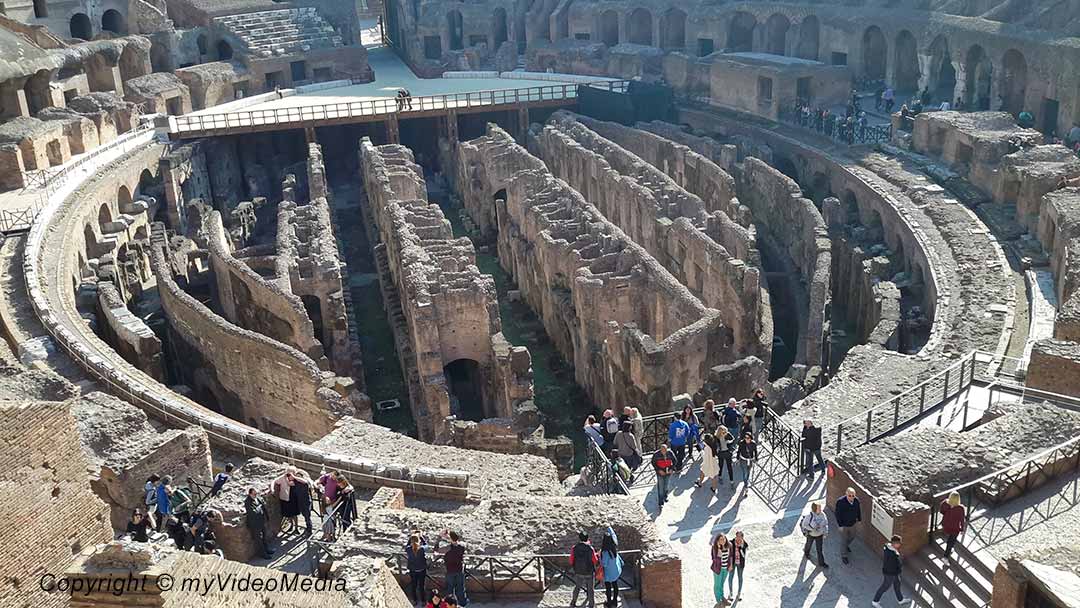 Das Untergeschoss, in dem sich Kerker Zugänge, Käfige für wilde Tiere und die komplexe Bühnentechnik verbarg, wurde erst später errichtet, nachdem am Anfang hier Seeschlachten abgehalten wurden.
