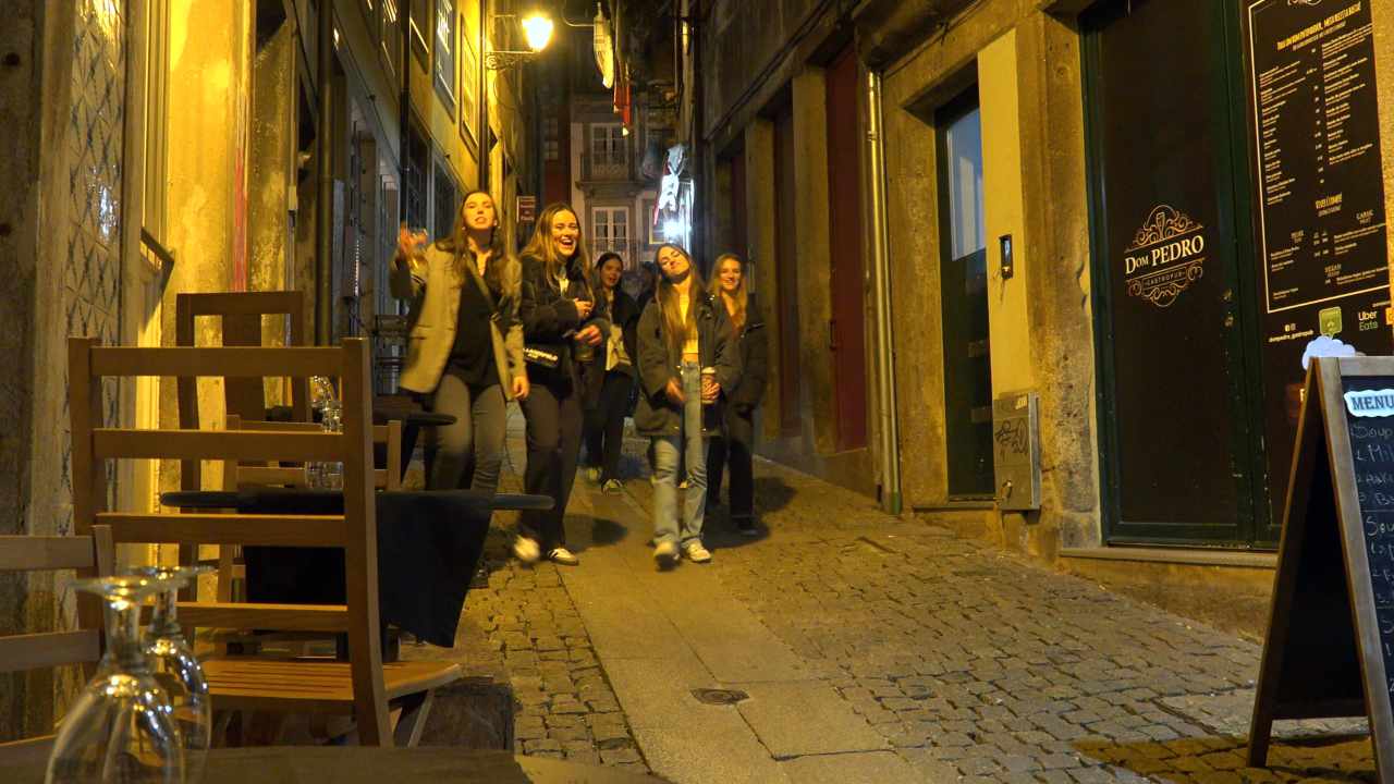 Eine Gruppe singender junger Frauen kommt gut gelaunt vorbei und unterstreicht seine Worte. Solche feiernden Frauen- bzw. Mädchengruppen kann man in Nordportugal öfter sehen. Auch mit dem Personal des Gastropubs können wir uns kurz unterhalten und erfahren, dass der Kellner 2 Monate hier arbeitet, aber aus Brasilien stammt. Die Kellnerin ist ebenfalls für 2 Monate hier und stammt aus Buenos Aires. Das zeigt, dass das Zusammenleben über ethnische Grenzen und Kulturkreise hinweg in diesem Land sehr gut funktioniert.