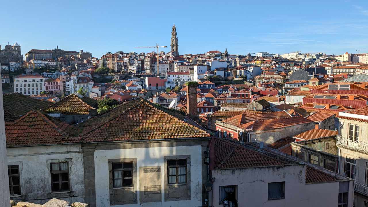 Über eine breite Treppe erklimmen wir die Terrasse die um die Kathedrale führt. Von hier bietet sich uns sich ein herrlicher Blick auf die Dächer der Stadt und den Douro.