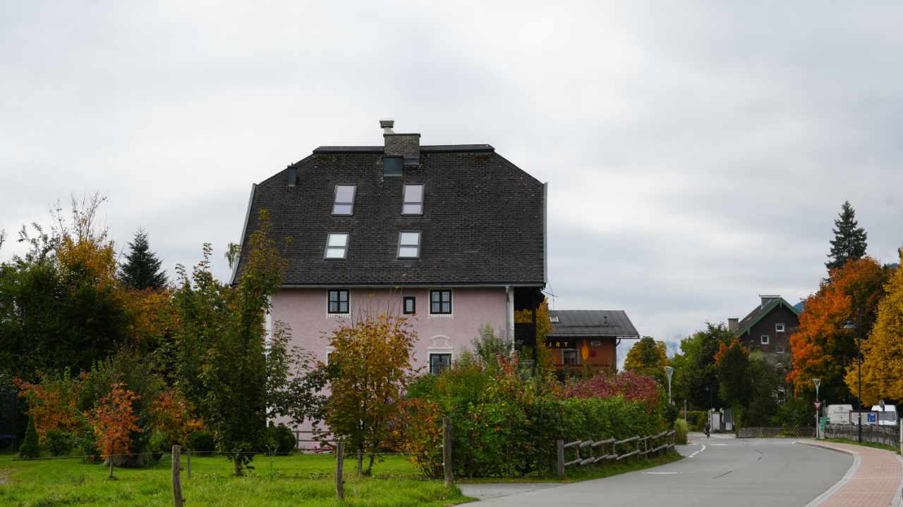 Der Wohlstand des Ortes wird uns gleich zu Beginn unseres Rundgangs deutlich. Gepflegte Villen in alpenländischer Architektur und schön gestaltete Gärten säumen die Straßen.