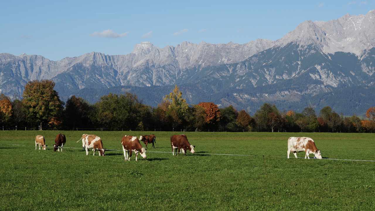 Dazwischen liegen weitläufige Wiesen, auf denen die Pinzgauer Rinder grasen. Die Pinzgauer sind für ihre widerstandsfähigen Hufe bekannt, die ihnen eine große Zugkraft für Fuhrwerke verleihen und es ihnen ermöglichen, auf steilen Weiden im Gebirge zu grasen. In der österreichisch-ungarischen Monarchie waren sie die am weitesten verbreitete Rinderrasse. Heute ist der Bestand der reinrassigen Tiere zwar gesunken, doch weltweit, besonders in Kanada, findet die Rasse immer noch Zulauf.