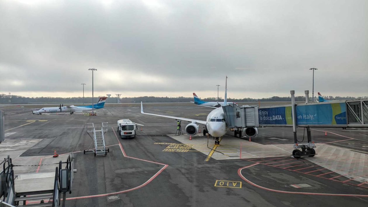 The nearest airport to our home is Luxembourg. We set off by car early in the morning, as there is a strike on public transport and we expect a higher traffic volume on the highway. But everything goes well, and we get to the airport in time for our departure.