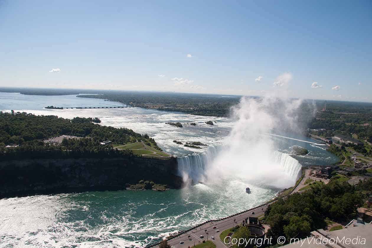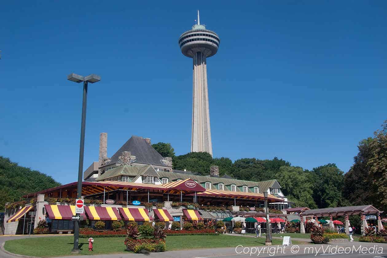 From the Skylon tower you have a fantastic view on the Canadian Horseshoe Falls, the American Falls and the casino area.